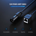 - Plug and Play for Stage Lighting Scenes- The 5 pin XLR male connectors are also compatible with DMX-CON Controller Series and other DMX mixing consoles for recording studios, concert venues, amplifiers, bands, live events, and any other professional interactive lighting scenes. The standard RJ45 female connector receives most CAT-5 ethernet cables