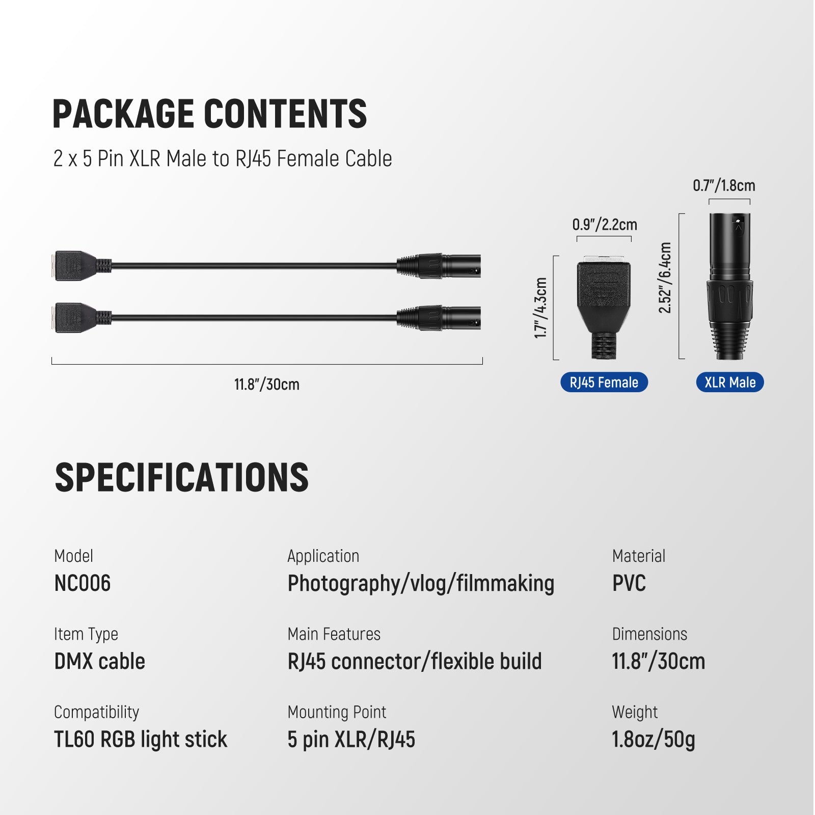 - For RGB Tube Light Stick- This XLR adapter set can connect your RGB Light Stick to a DMX512 console for professional and creative lighting control (for NEEWER TL60/TL90C/TL120C RGB tube light ONLY)
