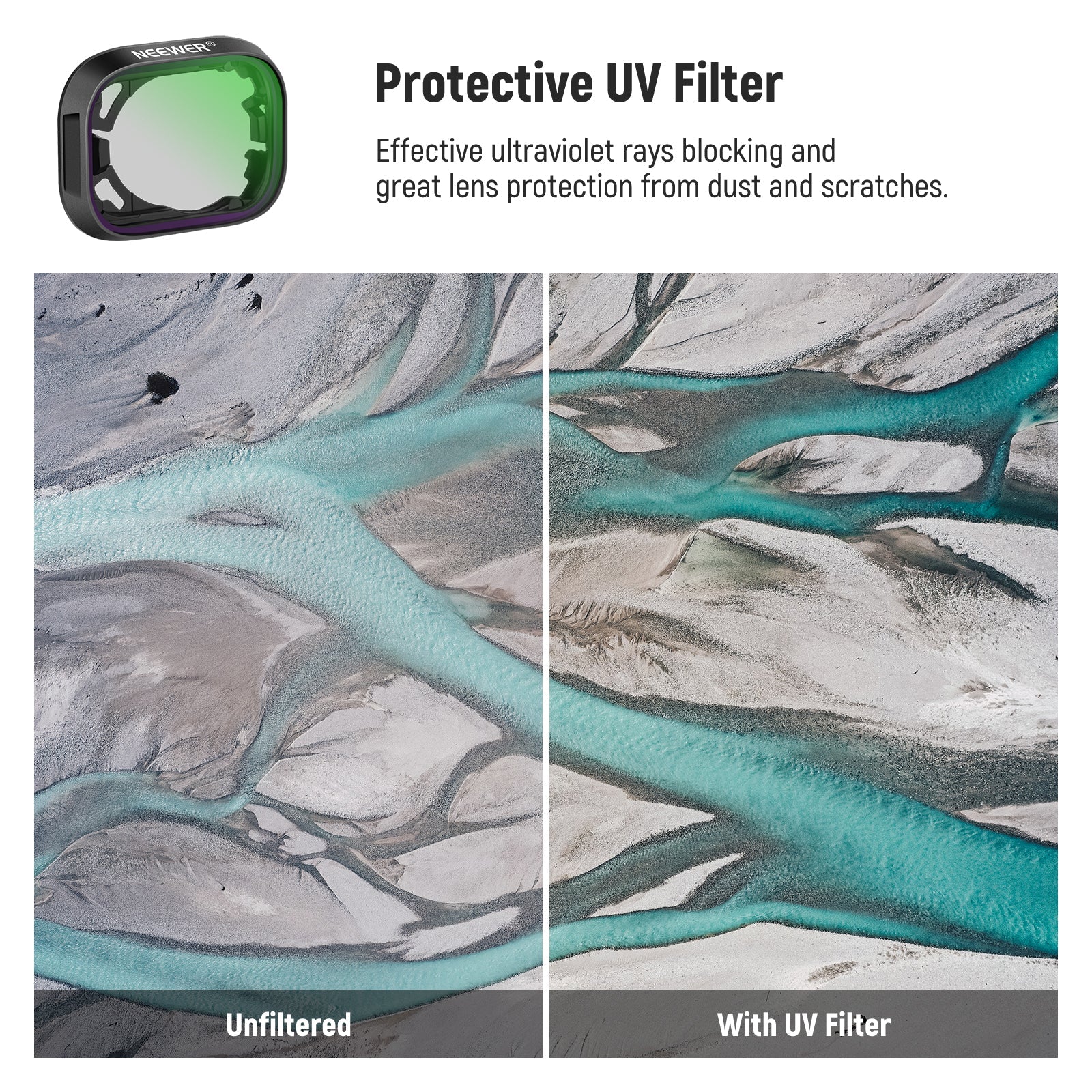 - Multi NANO Coated HD Optical Glass- The HD optical glass built drone filters from NEEWER help deliver clear footage while the multi layers of NANO coatings on both sides of the filters make them resistant to water, scratch, dust, and fingerprint