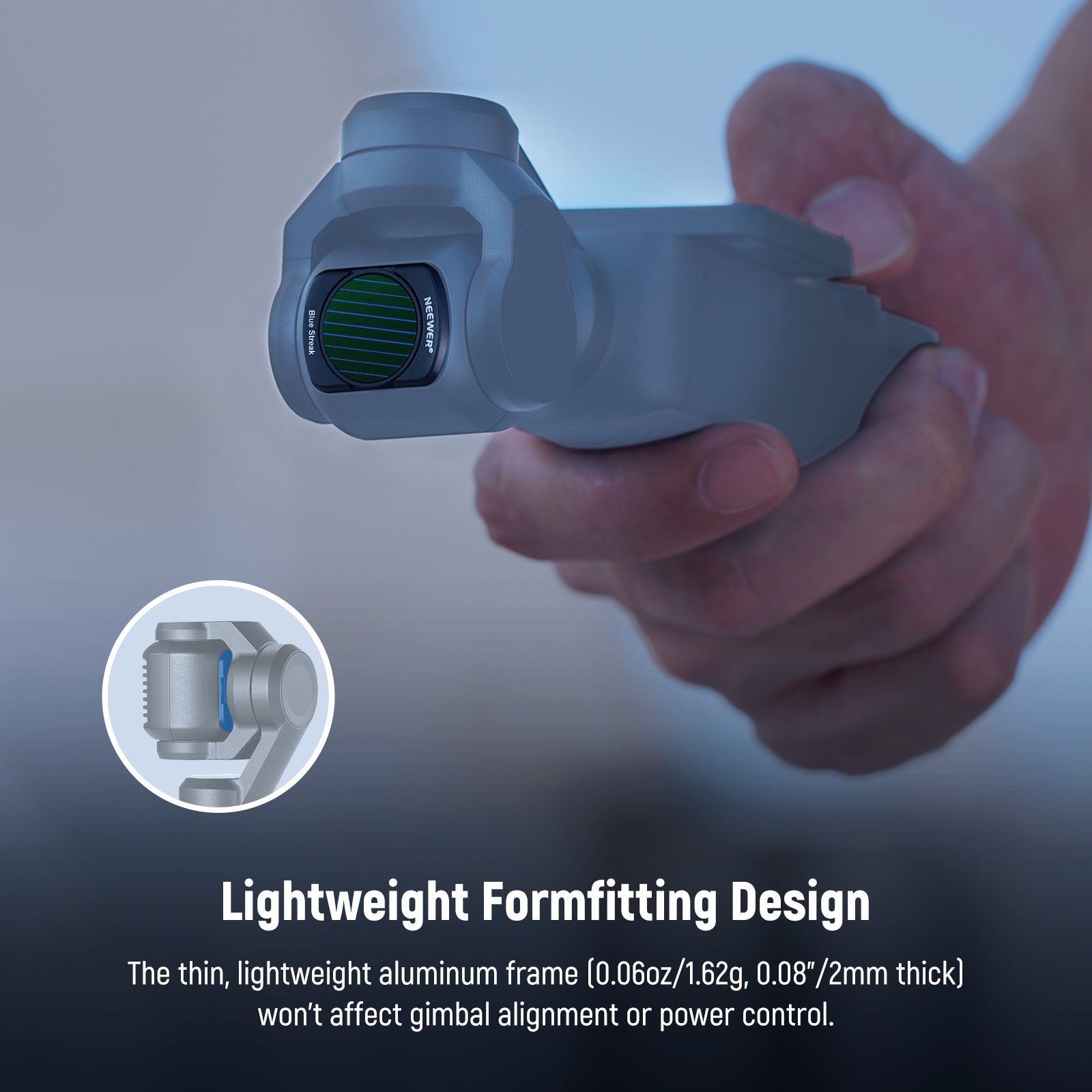 - Fast & Secure Magnetic Attachment- The magnetic design ensures rapid filter changes in just 1 second and provides a secure grip when using auto follow, shooting outdoor sports, or switching between horizontal and vertical shooting. Precision CNC machined lightweight aluminum frame (0.06oz/1.62g each) seamlessly fits the gimbal without any impact on gimbal calibration or storage