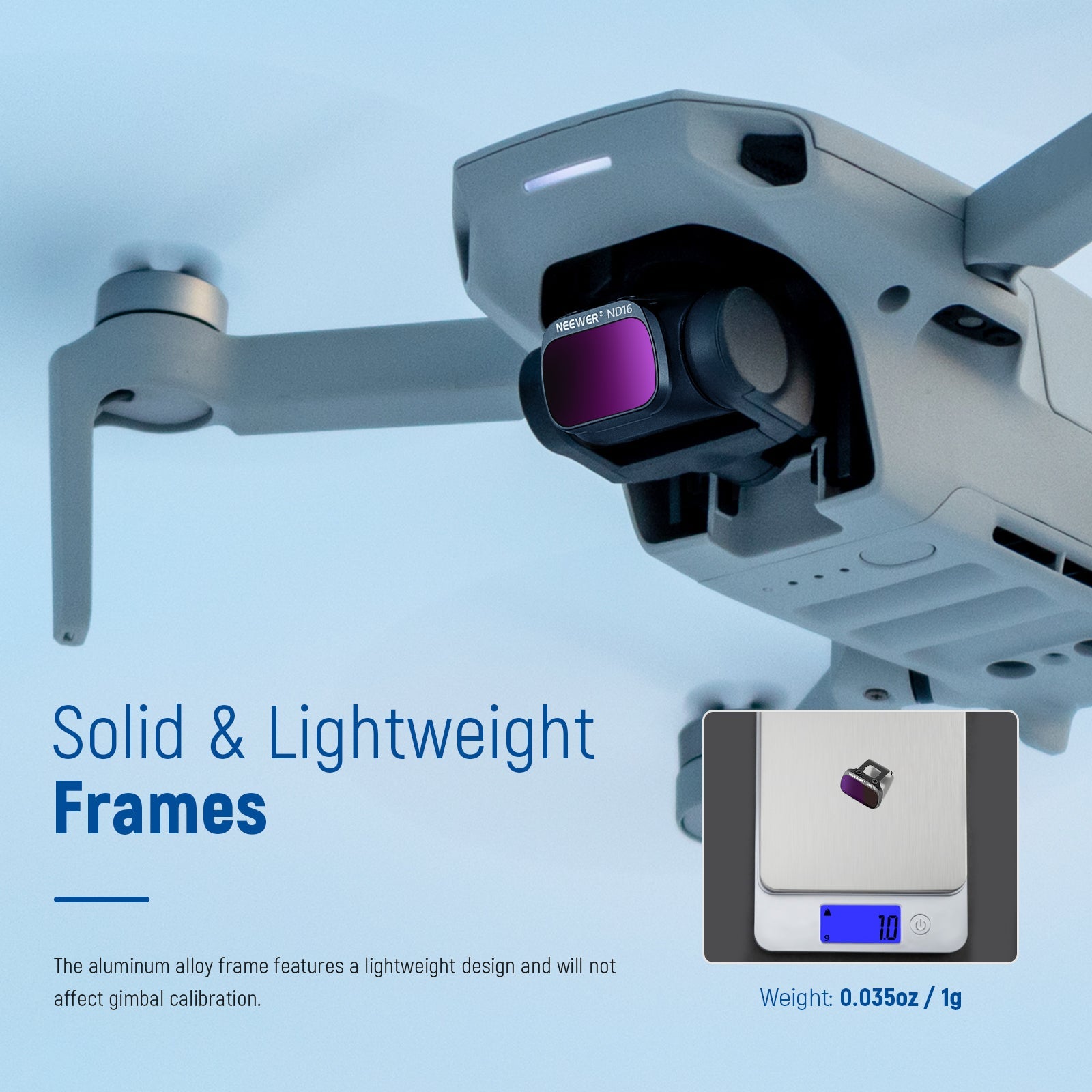 - Lightweight and Quick Installation- Each weighs only 0.76-0.8g and will not negatively affect your drone gimbal. The aluminum alloy frame with friction-enhanced pattern is easy to install and remove, and fits closely to the lens, not easily loosened, without damaging the image quality.