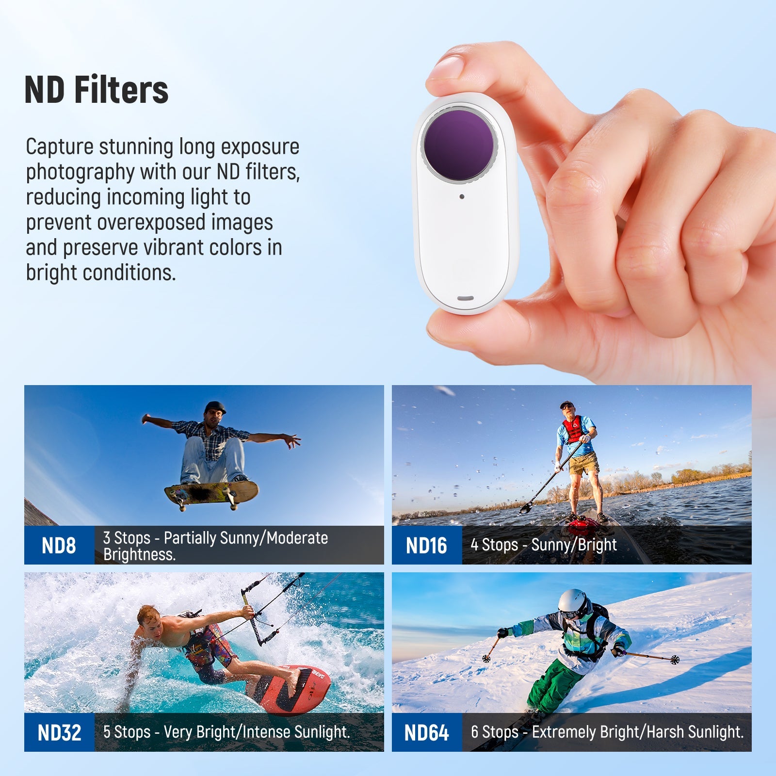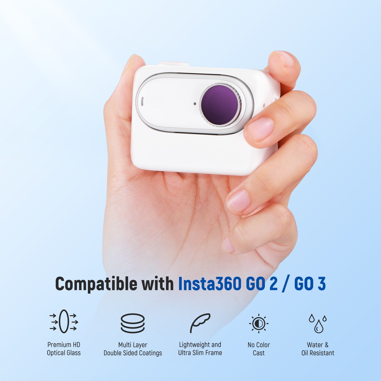 - Fully Compatible with Insta360 GO 2/GO 3- Specifically designed for the latest GO 2 and GO 3 action cameras. Includes 1x UV filter, 1x CPL filter, and 4x ND filters (ND8/ND16/ND32/ND64), and also a cleaning cloth and filter case for efficient storage and protection