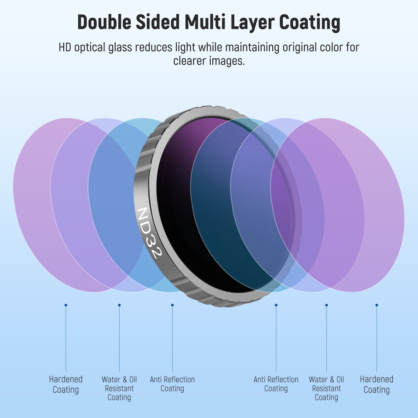 - Multi NANO Coated HD Optical Glass- Made of imported HD optical glass with 30 layers of NANO coatings on both sides, these filters are effectively protected against water, dust, oil, fingerprint, scratches, and reduce the reflection coming from the filter itself ground