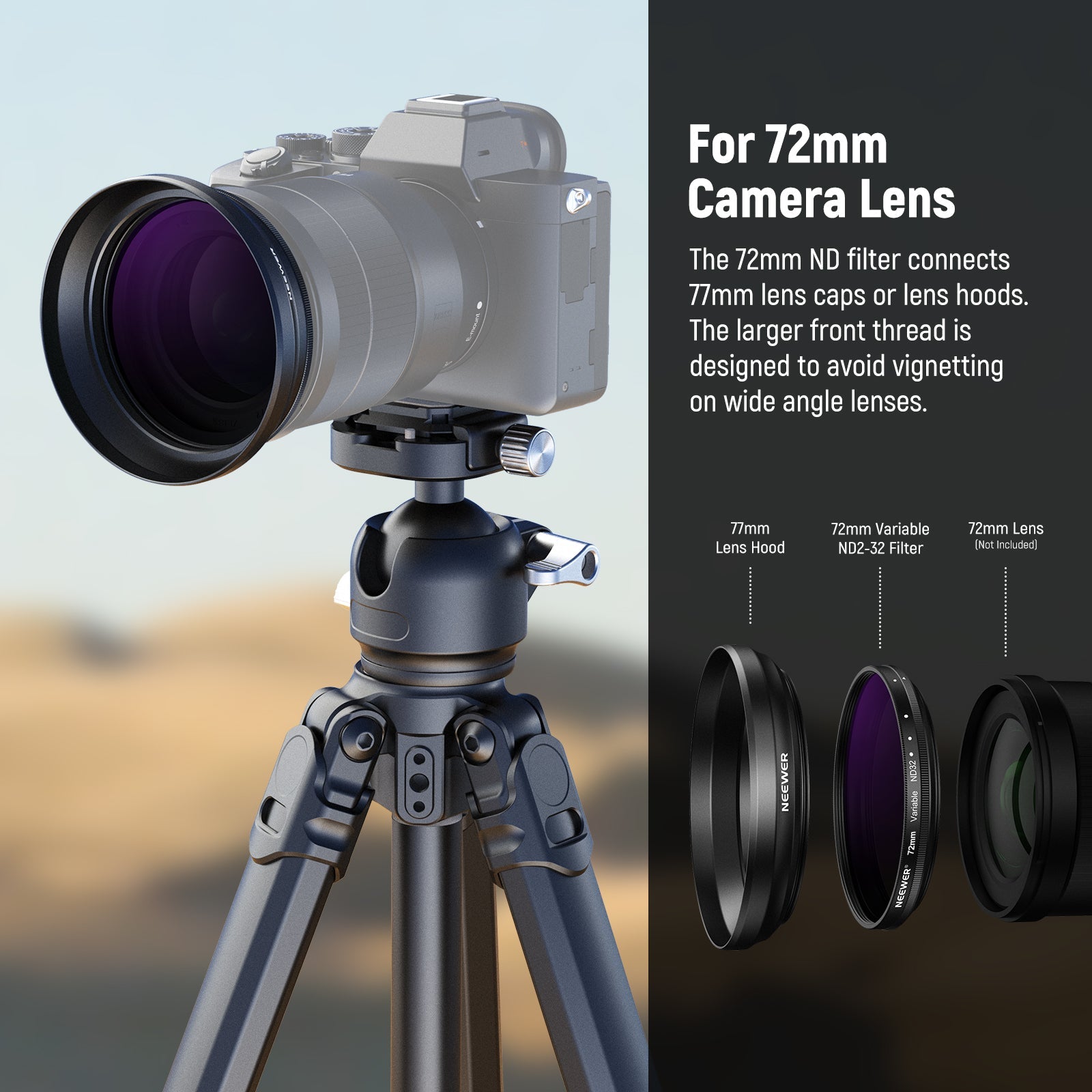 NEEWER 72mm Variable ND2-32 Filter with Lens Hood for 85mm Telephoto Phone Lens