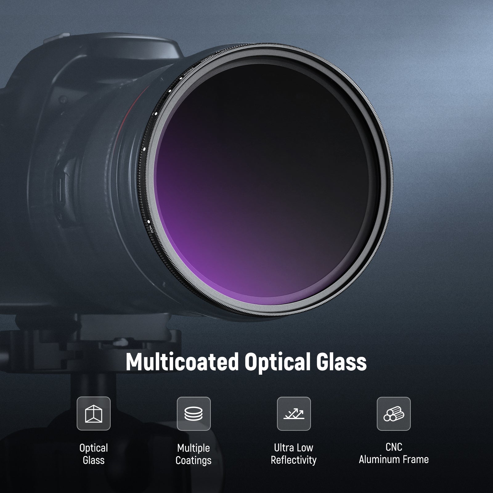 - Accurate Exposure Control- With 1-5 stops of adjustable light reduction, this variable neutral density filter can better control exposure and shutter speeds, and create dynamic motion blur when capturing rivers, waterfalls, and light trails