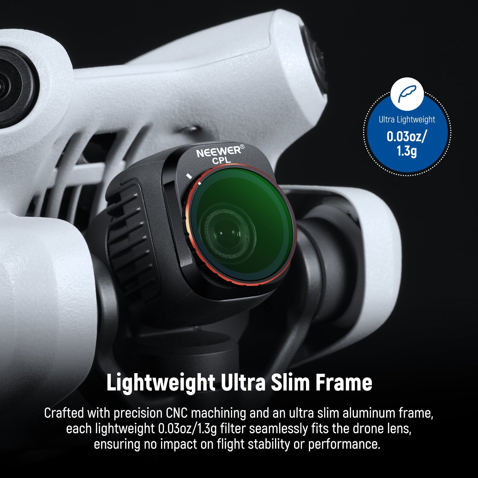 - Lightweight Ultra Slim Frame- Crafted with precision CNC machining and an ultra slim aluminum frame, each lightweight 0.03oz/1.3g filter seamlessly fits the drone lens, ensuring no impact on flight stability or performance. Come with a compact carrying case and a cleaning cloth for easy storage and maintenance