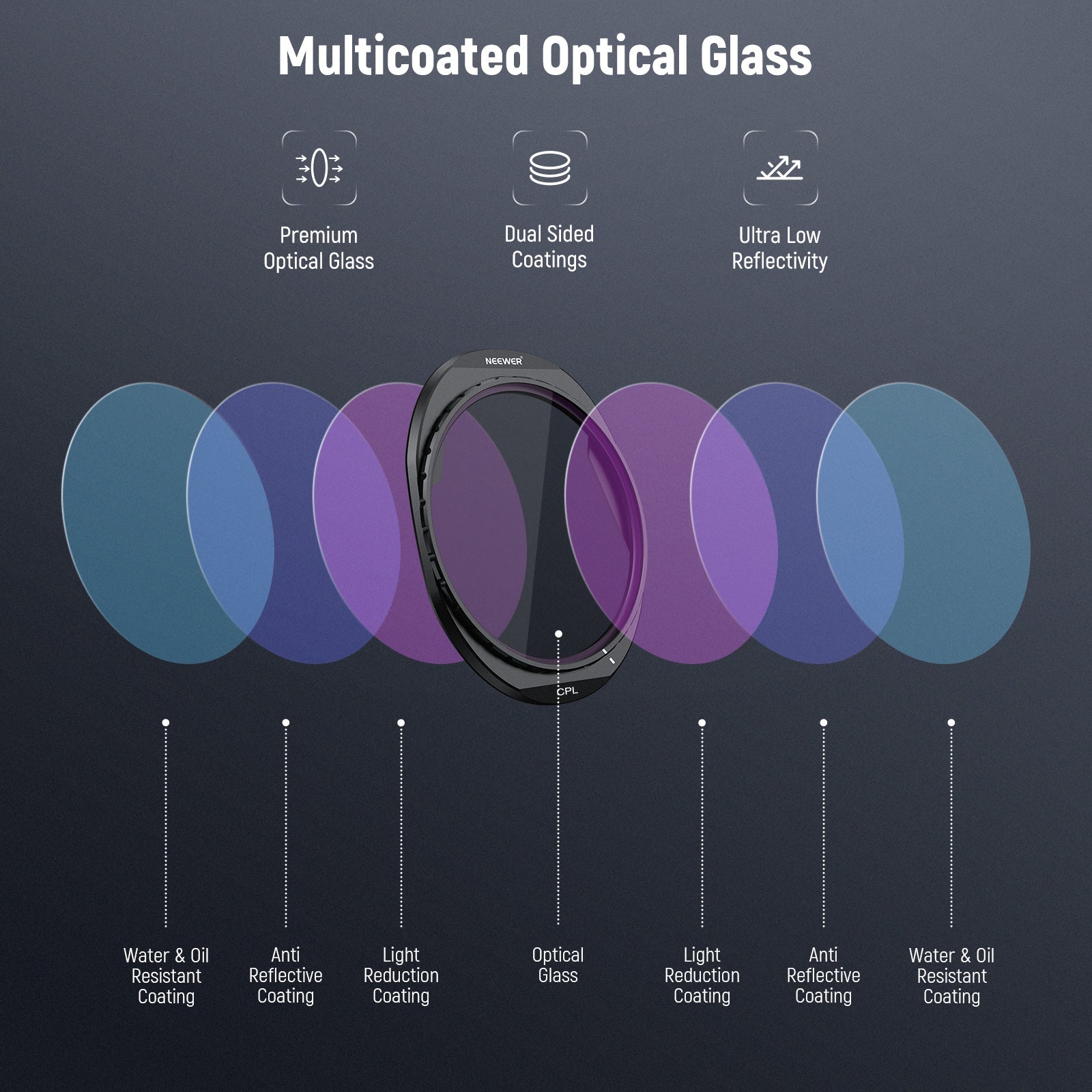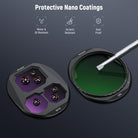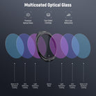 - Multicoated Optical Glass- Optical glass ensures accurate color reproduction and enhanced clarity. Multiple protective coatings resist water, dust, smudges, scratches and reduce reflections. A cleaning cloth is included to help you keep the filters spotless