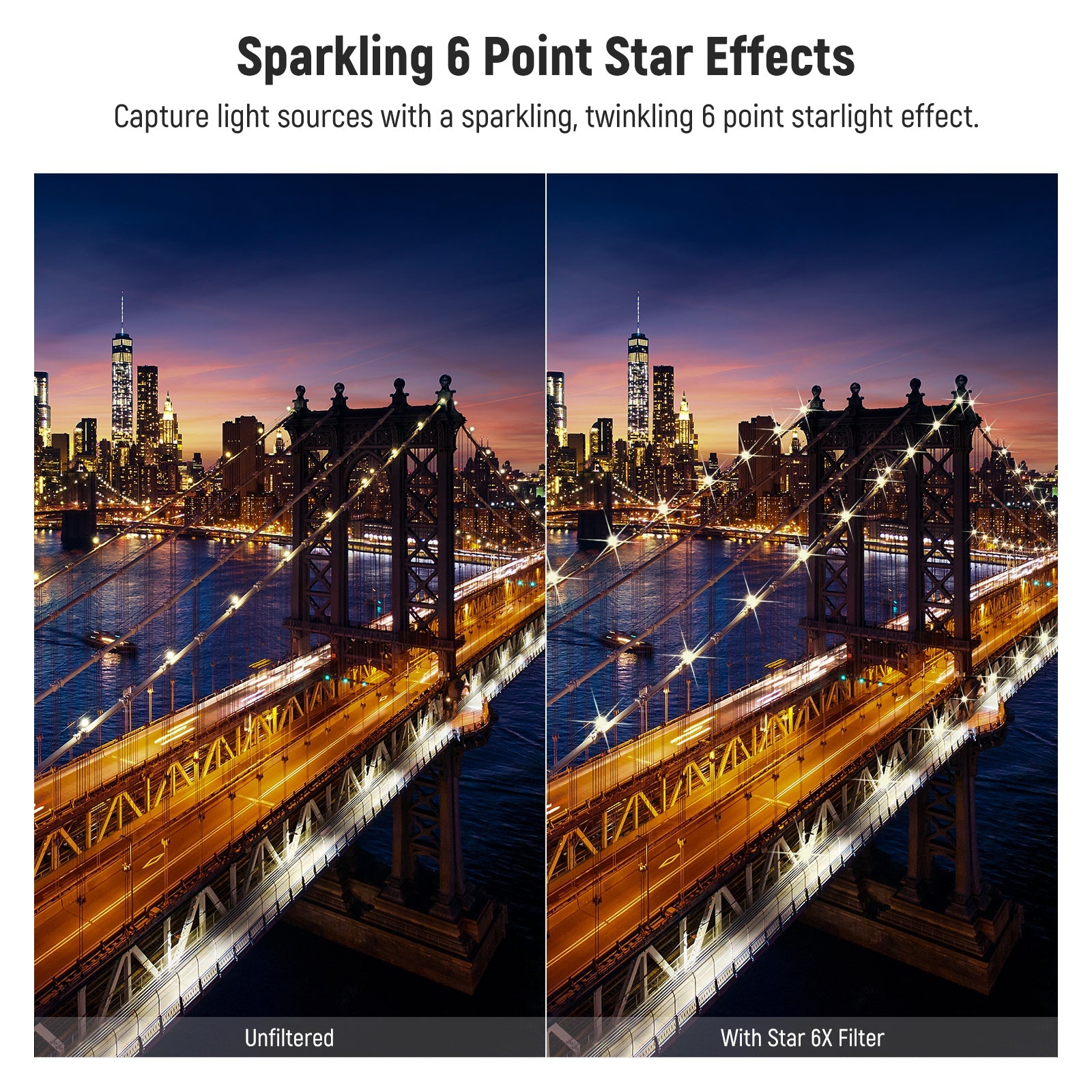 - Sparkling 6 Point Star Effects- Capture light sources with a sparkling, twinkling 6 point starlight effect. Perfect for night photography, festivals, creative portraits, weddings, action packed scenes, and artistic shoots as essential and must have accessories for content creators/influencers' gimbal camera gears