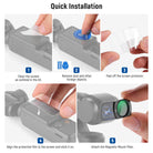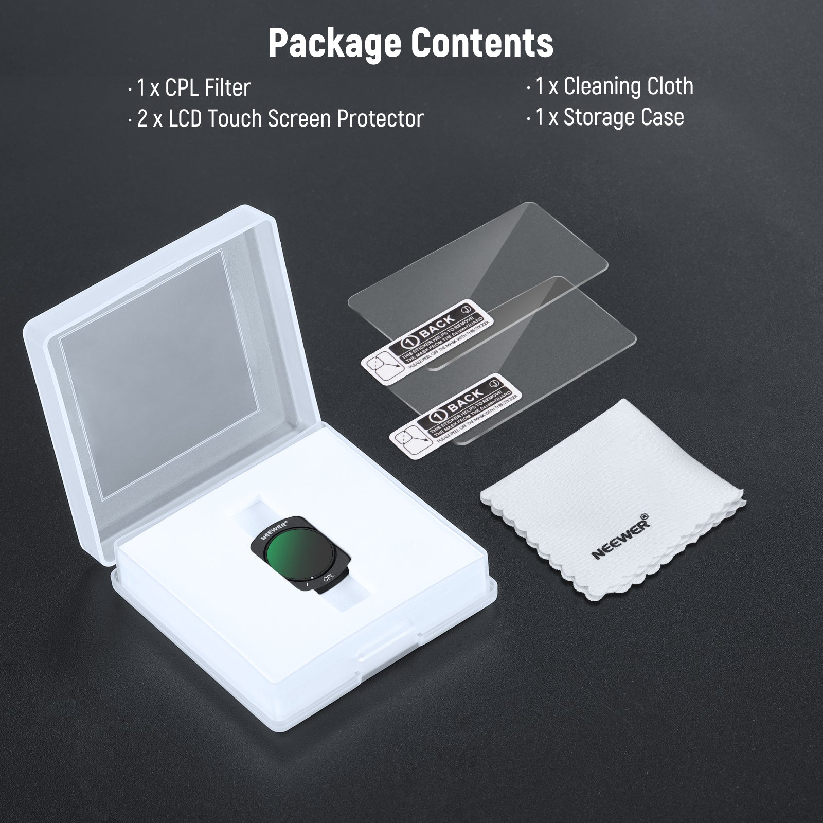 - Fully Compatible with DJI Osmo Pocket 3- NEEWER magnet circular polarizing filter is compatible with DJI OSMO Pocket 3, featuring an instant and secure magnetic attachment, providing your device with a significant image quality boost whether you're shooting or recording video. Note: If a protective film is applied to the lens, it may interfere with gimbal storage