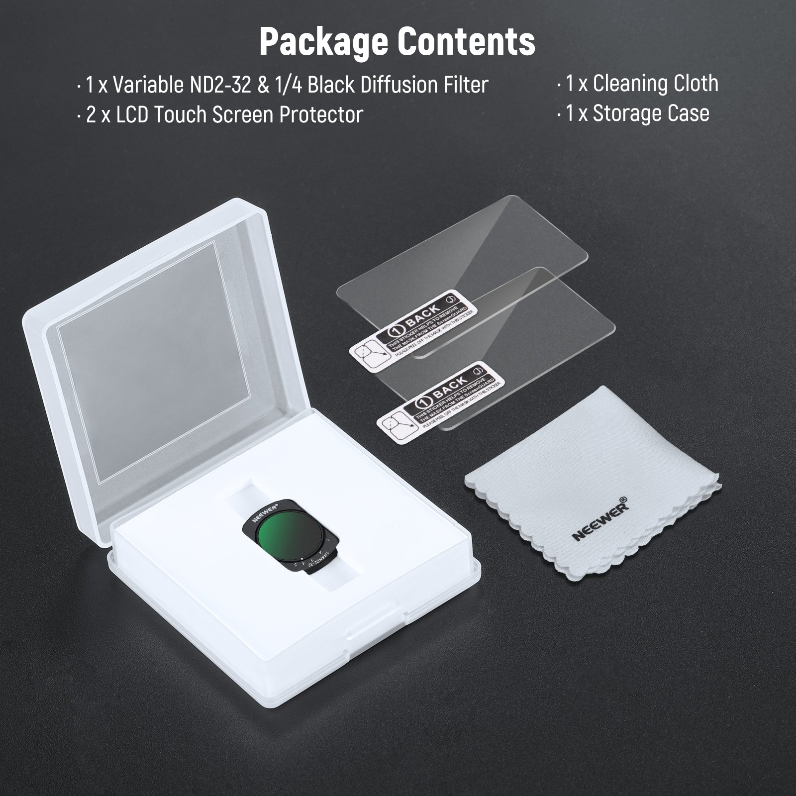 NEEWER FL-83 Variable ND2-32 & 1/4 Black Diffusion Filter For DJI Osmo Pocket 3