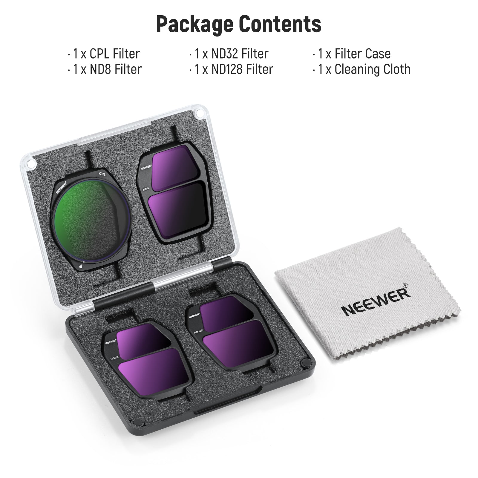 - Compatible with DJI Air 3S- Compatible with DJI Air 3S Drone and Air3S Fly More Combo, this filter accessories kit includes ND filters and a CPL (circular polarizing) filter for professional aerial photography and videography