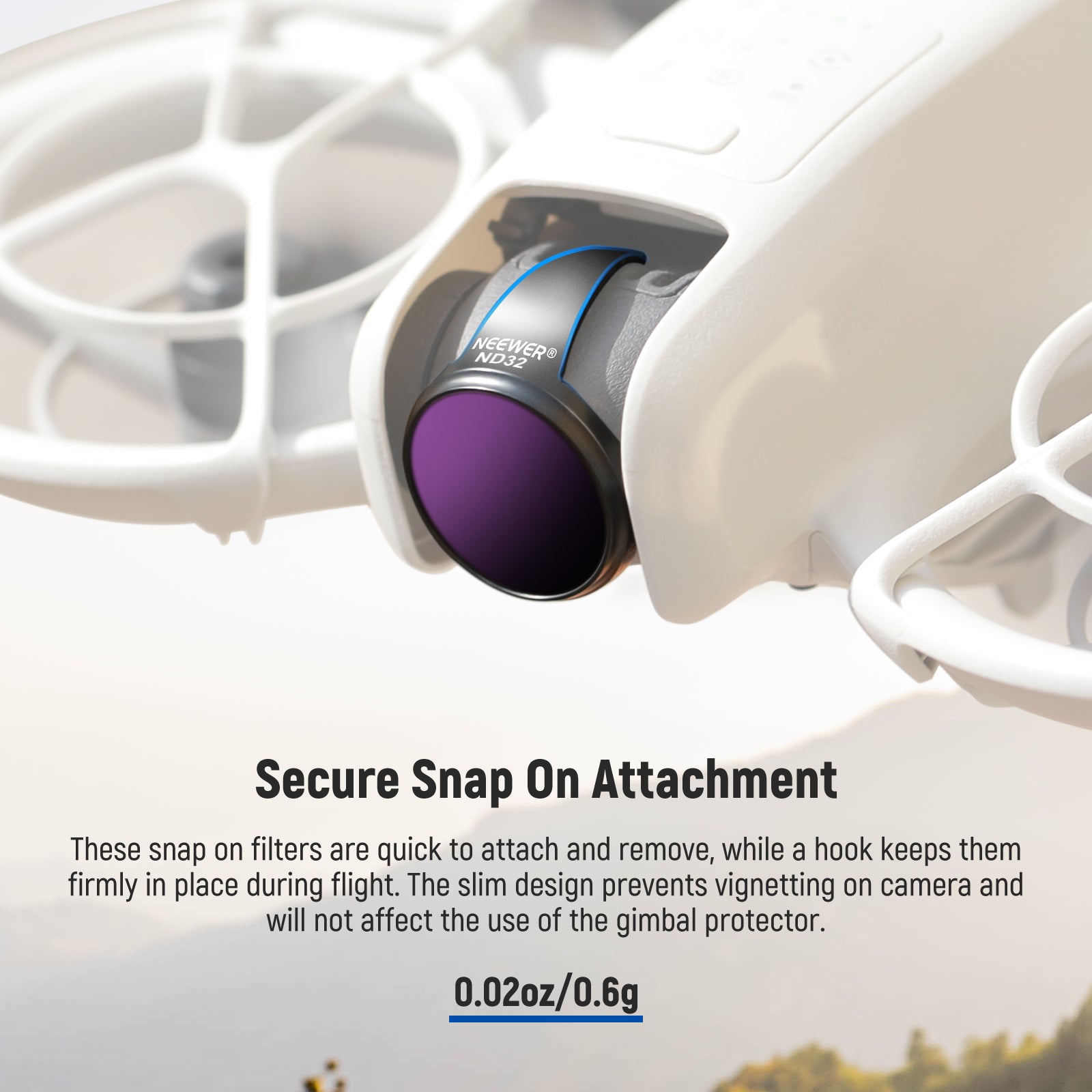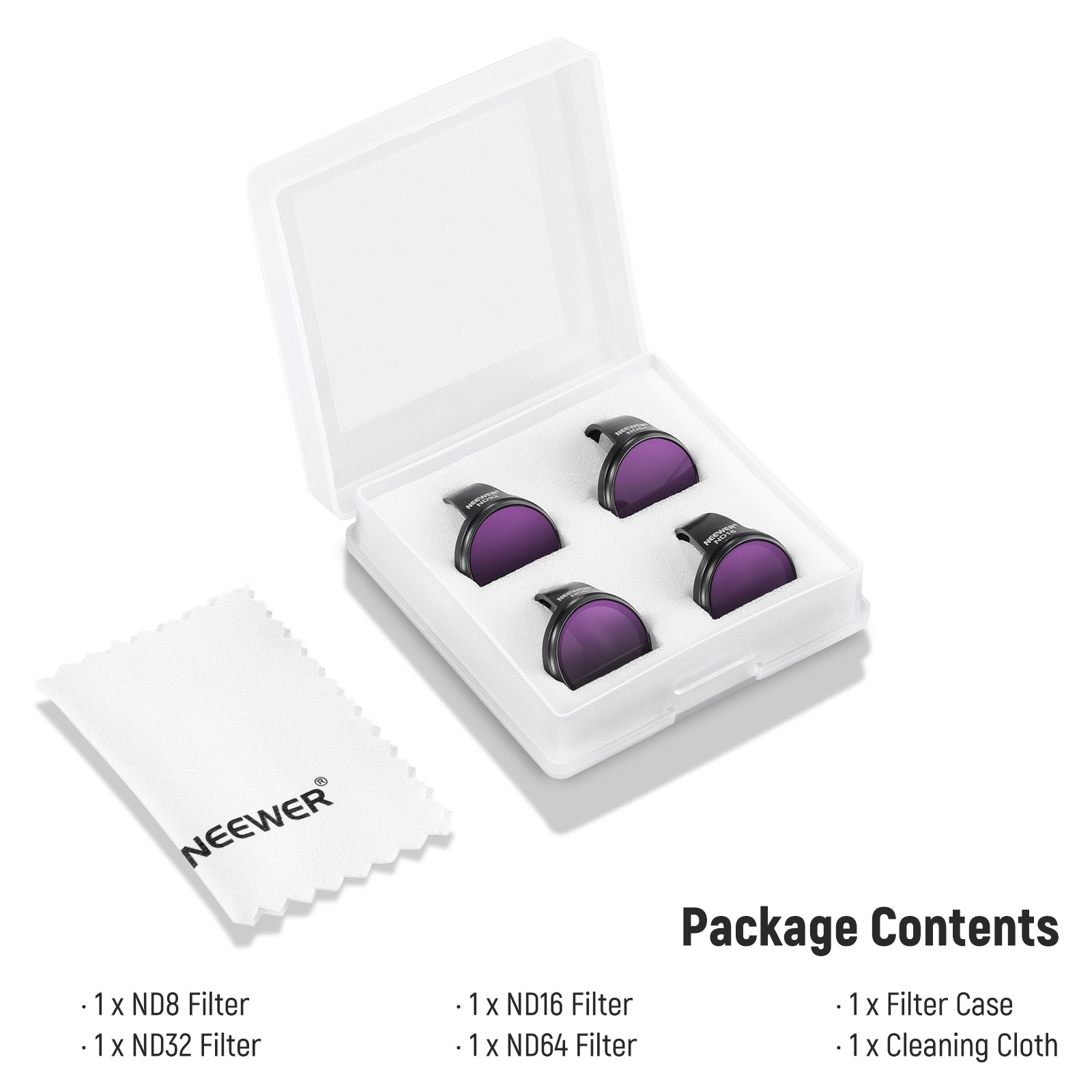 - Compatible with DJI NEO Drone- Compatible with DJI NEO Drone, this filter kit includes an ND8, an ND16, an ND32, and an ND64 filter for professional aerial photography and videography