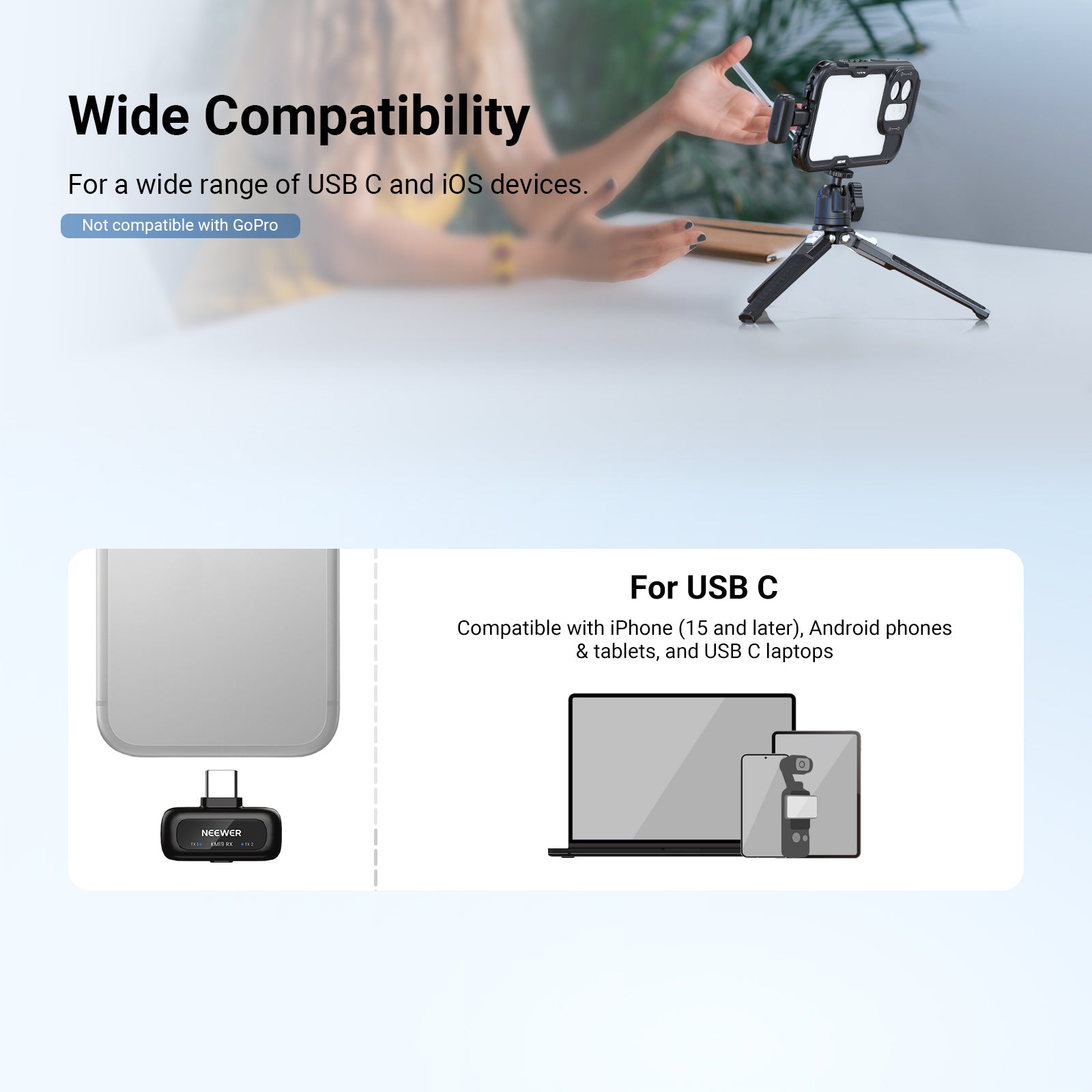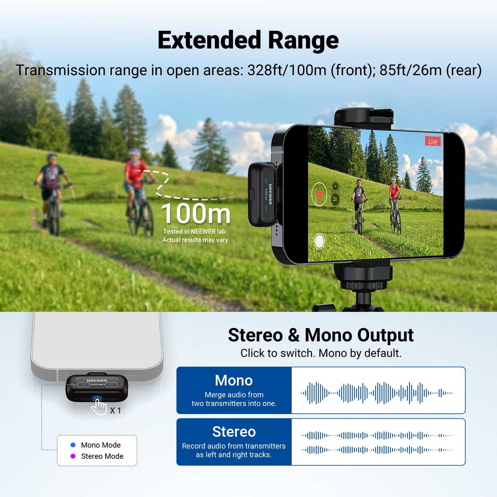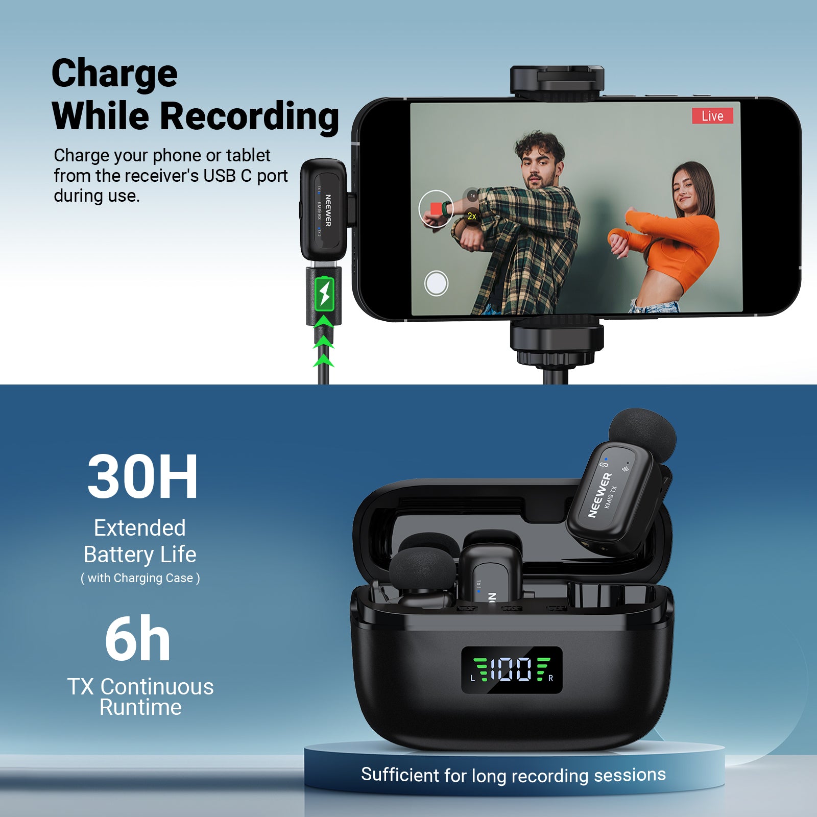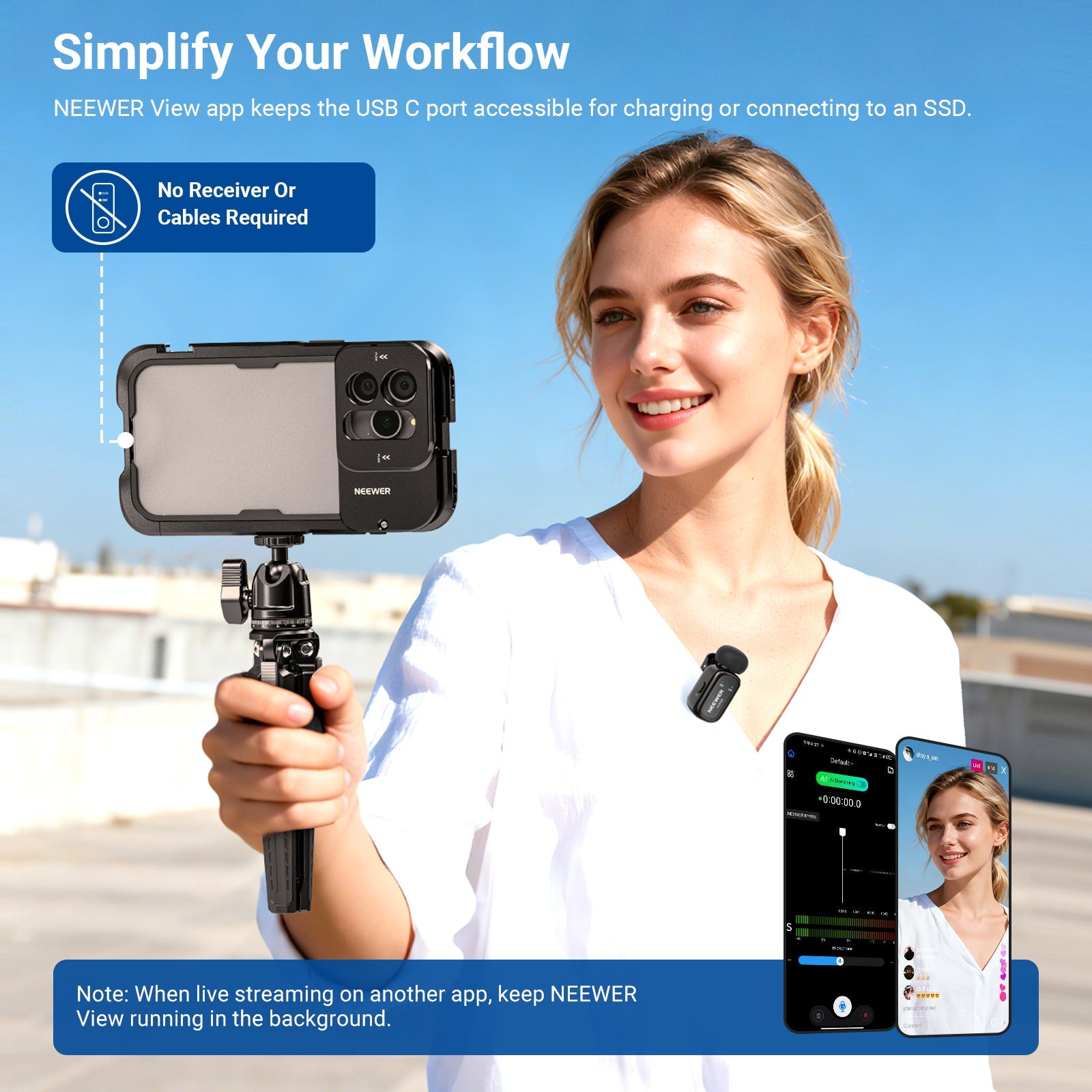 - Simplify Your Workflow- This wireless microphone transmitter connects directly to your smartphone or tablet via the NEEWER View app—no receiver or cable needed and no charging port occupied.