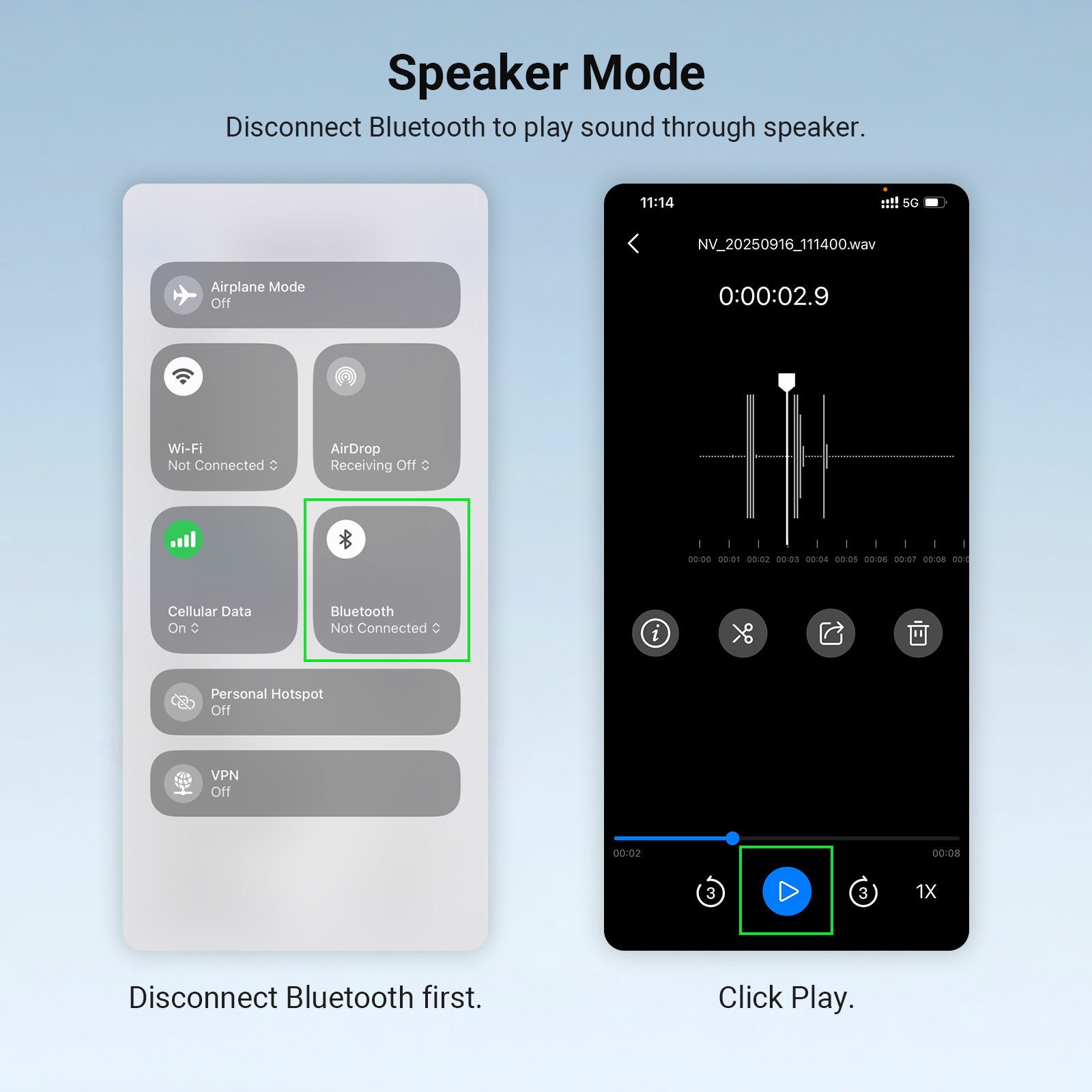 - Stereo & Mono Output- Single press RX to switch between stereo (purple indicator) and mono (blue indicator) modes. RX indicators sync with TX for smooth recording. Conveniently replay audio without unplugging RX