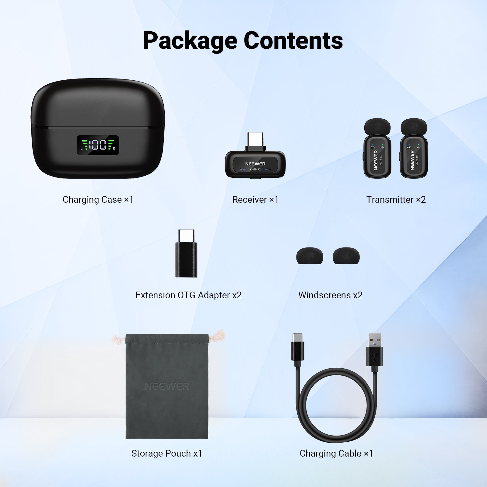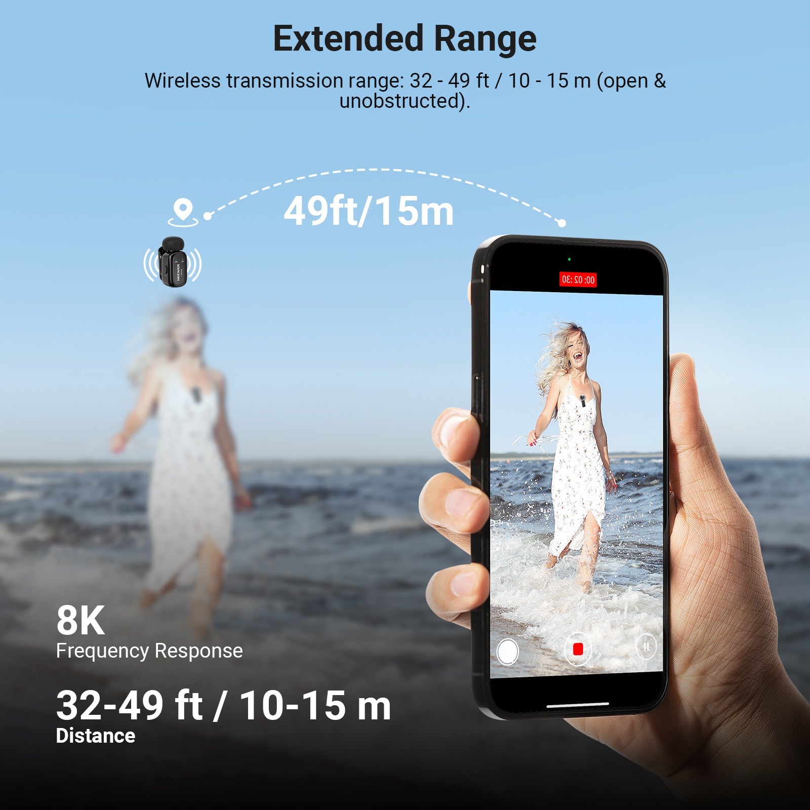 - Smart Noise Cancellation- The omnidirectional transmitter features noise cancellation, 16bit sampling rate, 20Hz-8KHz frequency response, and 76dB SNR for clear, natural sound. For advanced control, the NEEWER View app offers 5 noise cancellation levels, 3 vocal enhancement levels, 75Hz/150Hz/300Hz low cut, and supports MP3, WAV, AAC audio formats