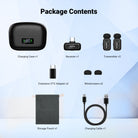 - Clip On Lav Wireless Microphone- Compact like earbuds, this small lavalier mic system includes a little plug & play USB C receiver (RX; 0.1oz/3g), two transmitters (TX; 0.2oz/6g each), and a charging case. One tiny adapter compatible with older iPhone iPad for vlog/content vlogging, one external adapter compatible with iPhone 17 16 15 Pro Max Mac Android phone tablet computer laptop. Not compatible with GoPro