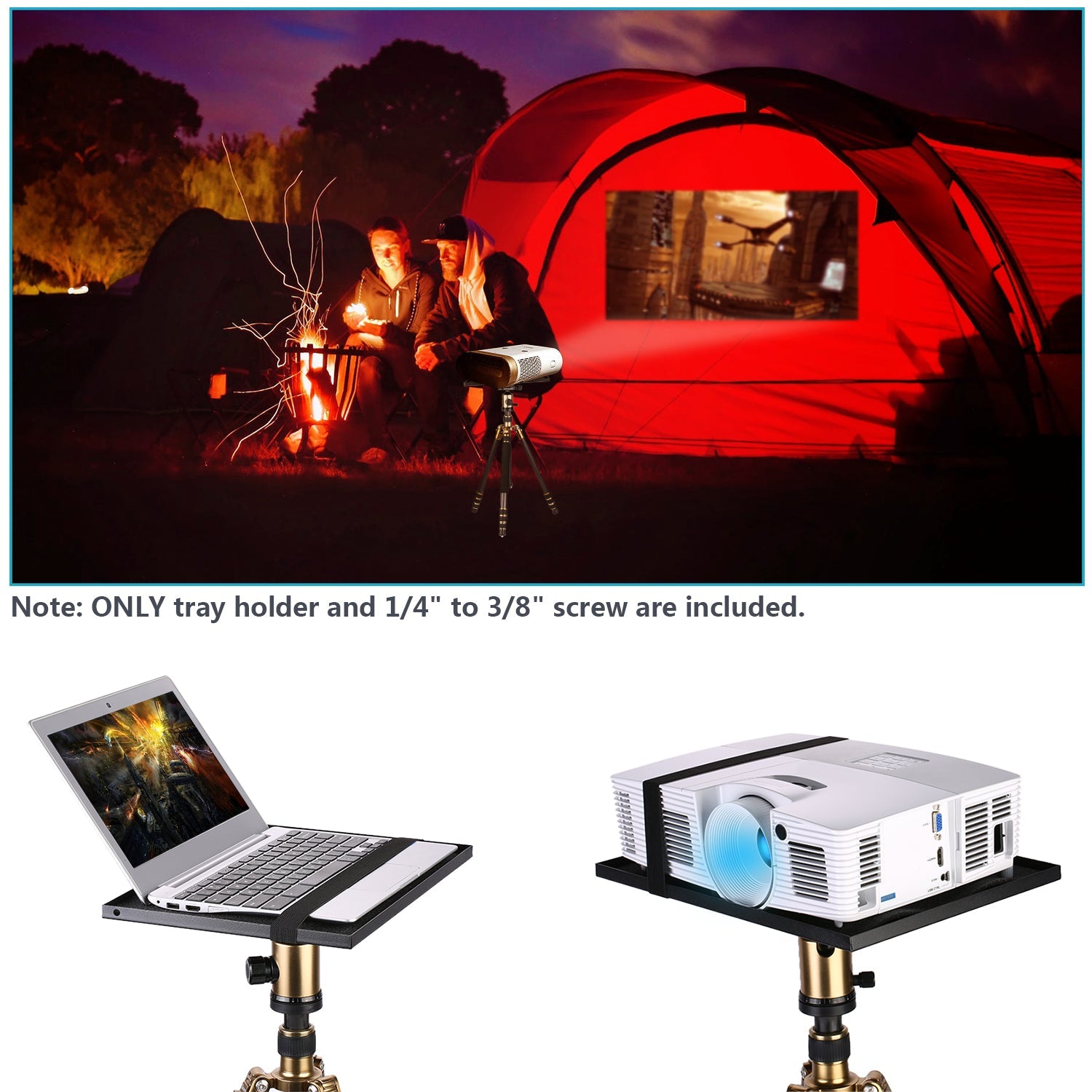 - The Tray Holder is made to hold the laptop and projector on a tripod to simplify your presentation setup and generate a nice Display effect (Tripod stand not included).