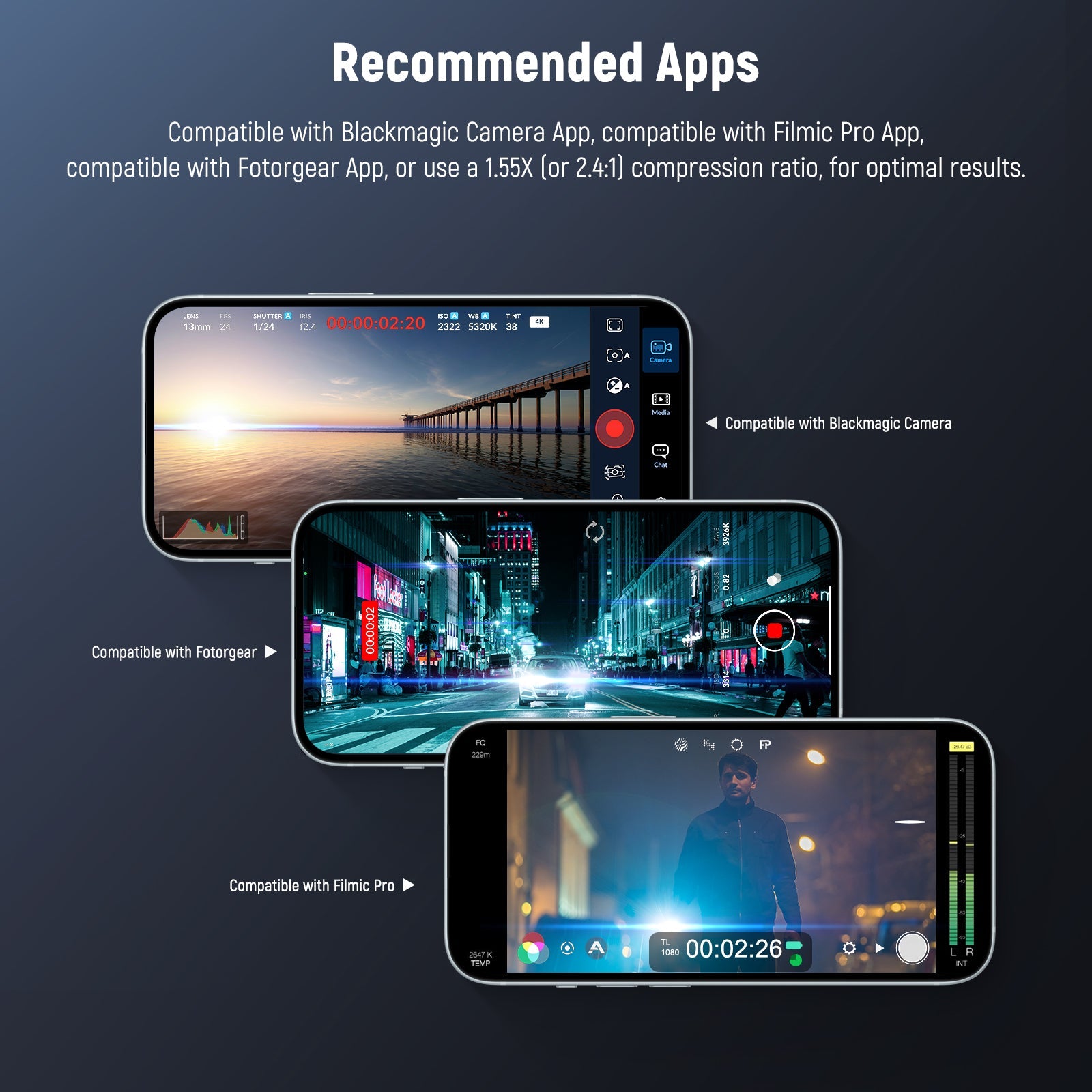 - 1.55x Blue Anamorphic Lens- This anamorphic lens provides a 110% wider field of view, a 2.4:1 cinematic aspect ratio via the 1.55x compression, and a retro blue streak glare effect for cinematic filming, vlogging, and photography, ideal for content creator essential and influencer must have gear