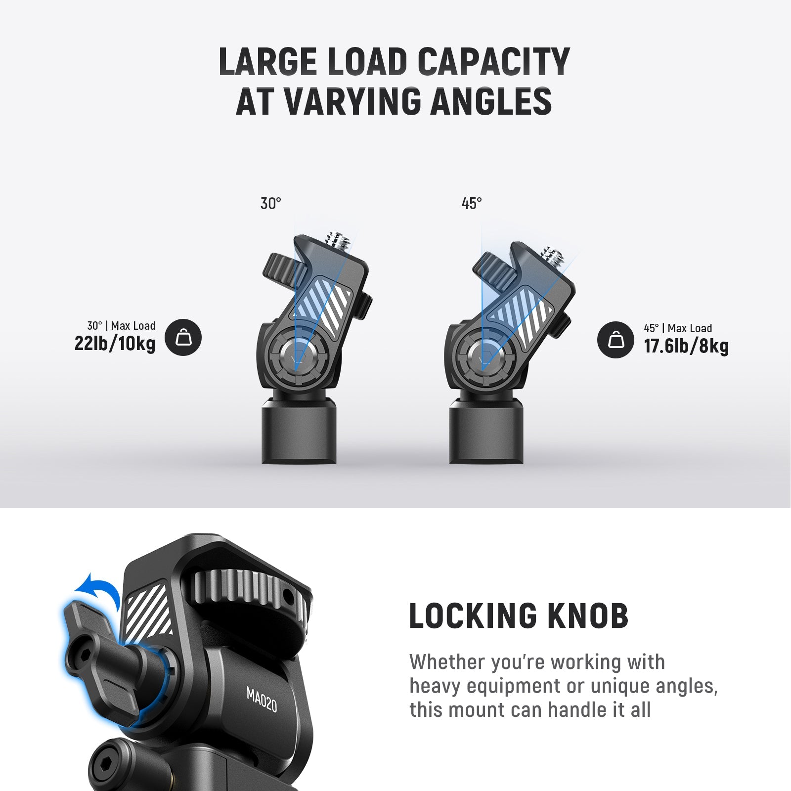 - Solid Aluminum Alloy Construction- Engineered with premium aluminum alloy, this camera monitor bracket holder features a high load capacity of 3.3lb/1.5kg to stably support a wide range of monitors