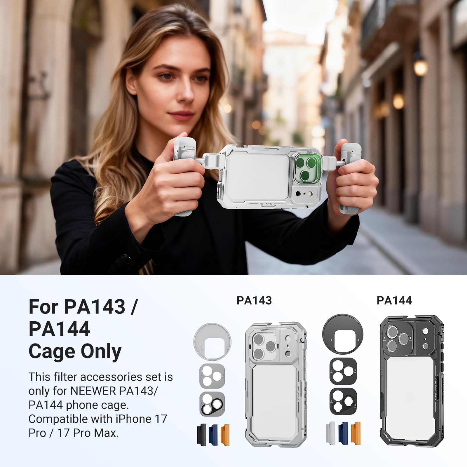 - For PA143/PA144 Cage Only- This filter accessories set is only for NEEWER PA143/PA144 phone cage. Compatible with iPhone 17 Pro / 17 Pro Max as content creator essential and influencer must have cell phone camera lens filters for mobile photography, vlogging, and more
