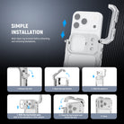 - 1 Click Installation & Full Access - Opened and locked via the side button, the phone cage needs no assembly and maintains full access to the camera, port, and buttons. A detachable rubber ensures seamless use of the Camera Control, and the hollow design is fully compatible with MagSafe wireless charging and magnetic accessories