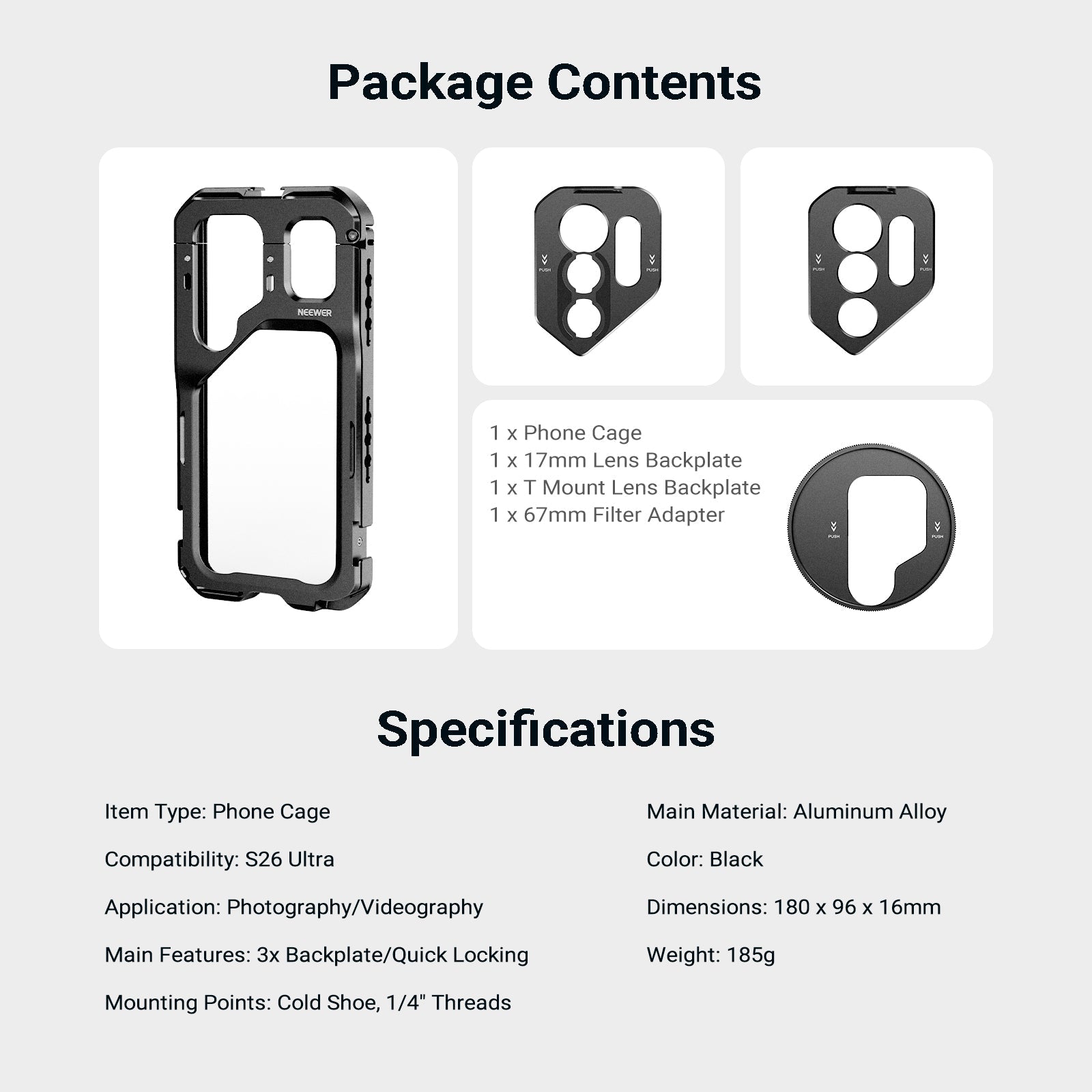 NEEWER PA182 Phone Cage Compatible with Samsung Galaxy S26 Ultra | Pre-Order