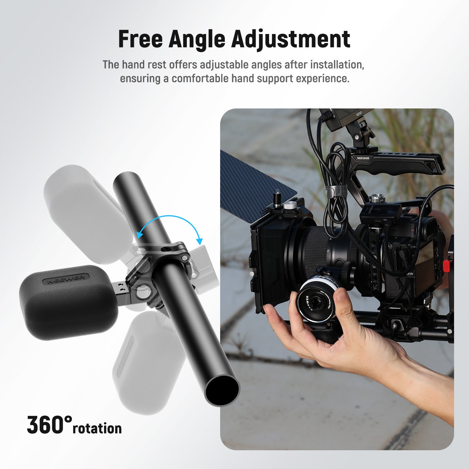 - Easy 15mm Rod Connection- Connect it to a camera cage or shoulder rig via the 15mm rod clamp and adjust it back and forth. The fully opened clamp allows you to attach it to the rod without detaching other accessories