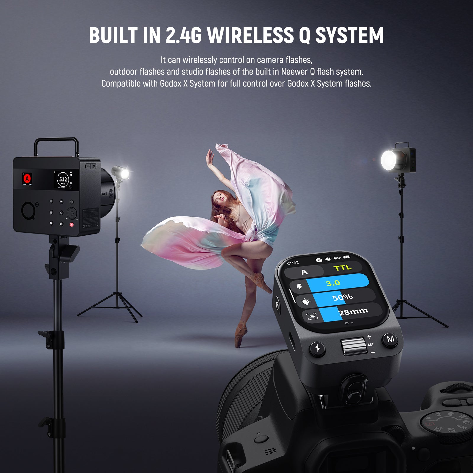 - HSS Sync & Modeling Light- Supports 1/8000s HSS using the QZ/QPro trigger (not included) to control background exposure and freeze motion even in bright conditions, while the built in LED modeling light lets you preview and adjust lighting for perfect shadows and highlights