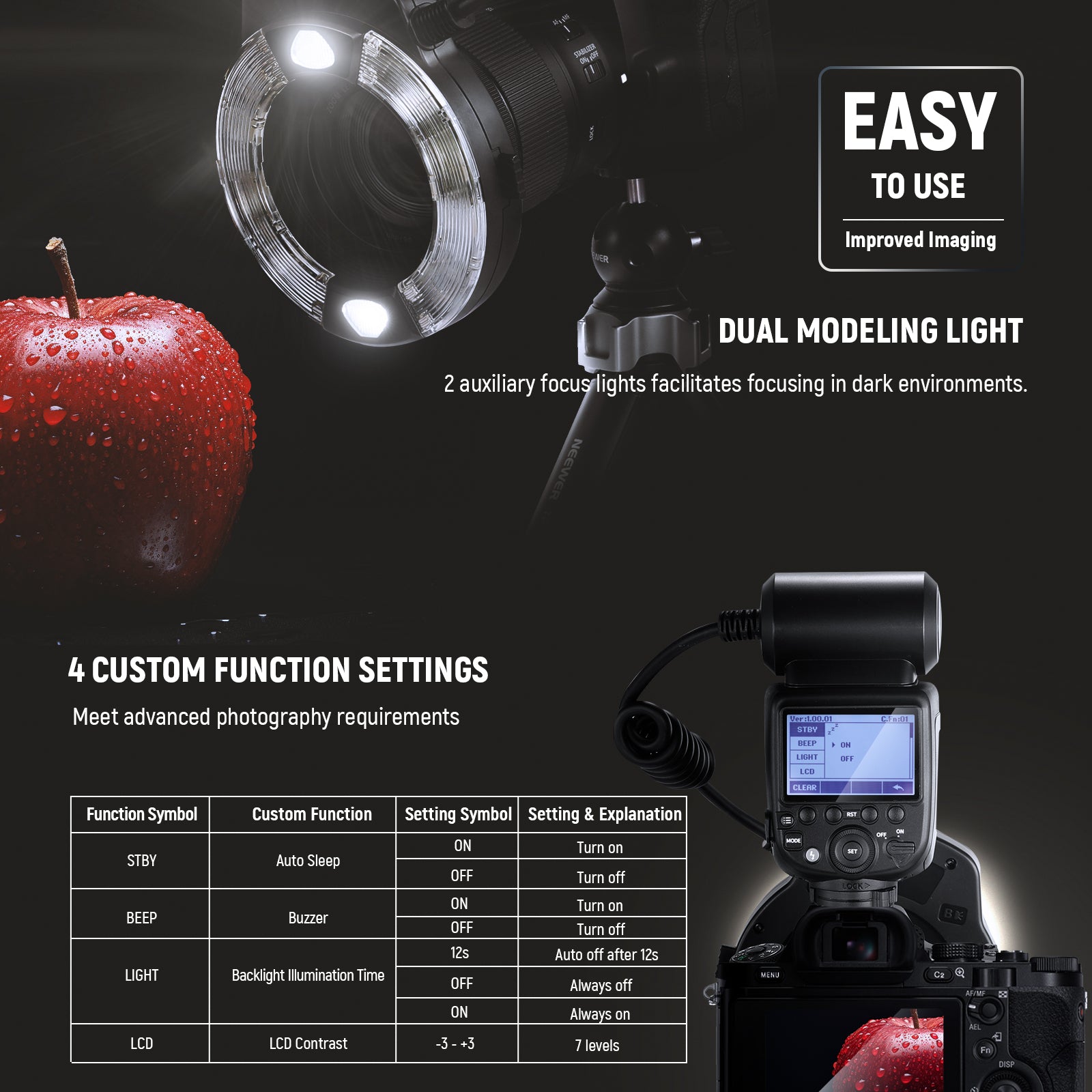 NEEWER RF1-C/N/S 76Ws 5600K GN15 E-TTL II Marco Ring Flash