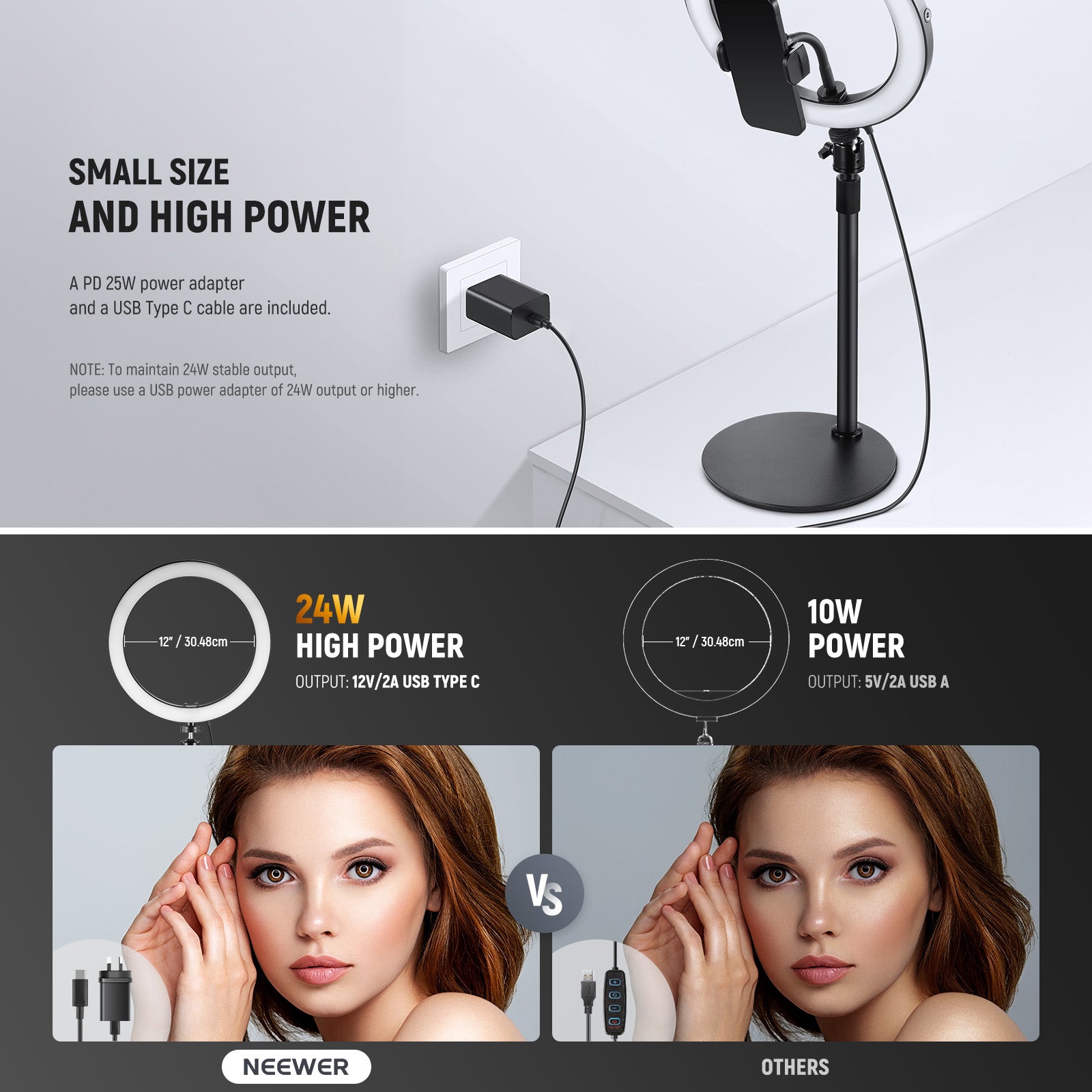 NEEWER RH12B 12" 24W High Power Desk Ring Light with Stand