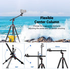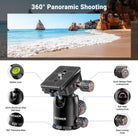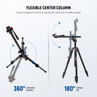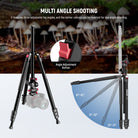 - Versatile Setup & Flexible Center Column- The camera tripod features an adjustable center column that can be raised for higher shooting angles, and horizontal positioning for 360° horizontal rotation and 120° vertical tilt. With a ball head, it additionally supports 360° panoramic photography and various shooting angles, essential and must have for content creator and influencers on low angle shots, sports photography, weddings, travel, vlogging and urban landscapes