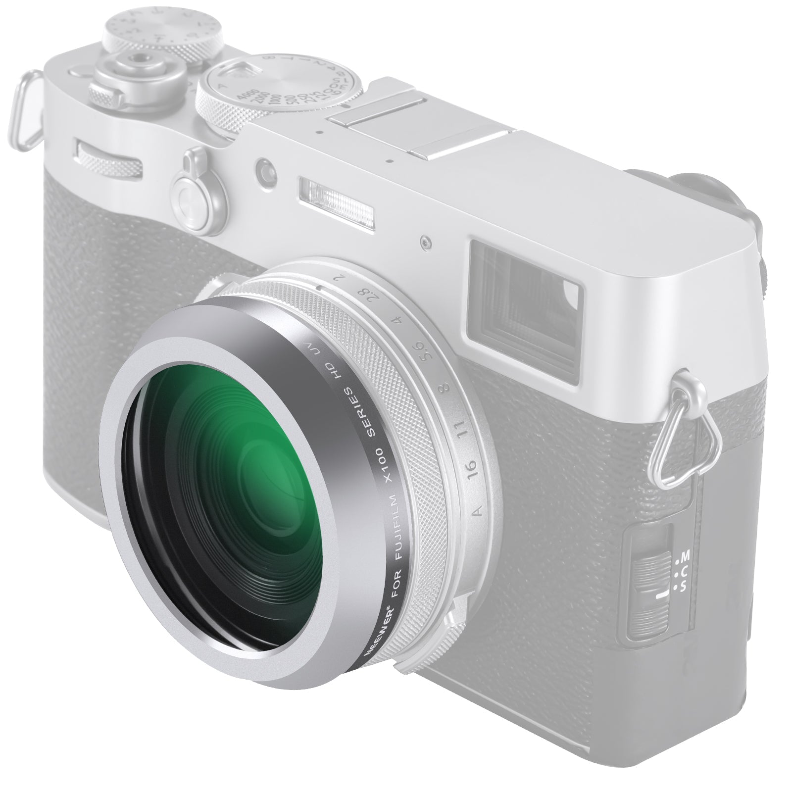- Stylish Look with Anodized Aluminum- Built with anodized aluminum frame, the UV filter takes on a stylish look with matte finish. Available in black or silver, the filter matches the color of your X100 camera without appearing obtrusive. The lightweight aluminum frame makes it not bulky and easy to carry