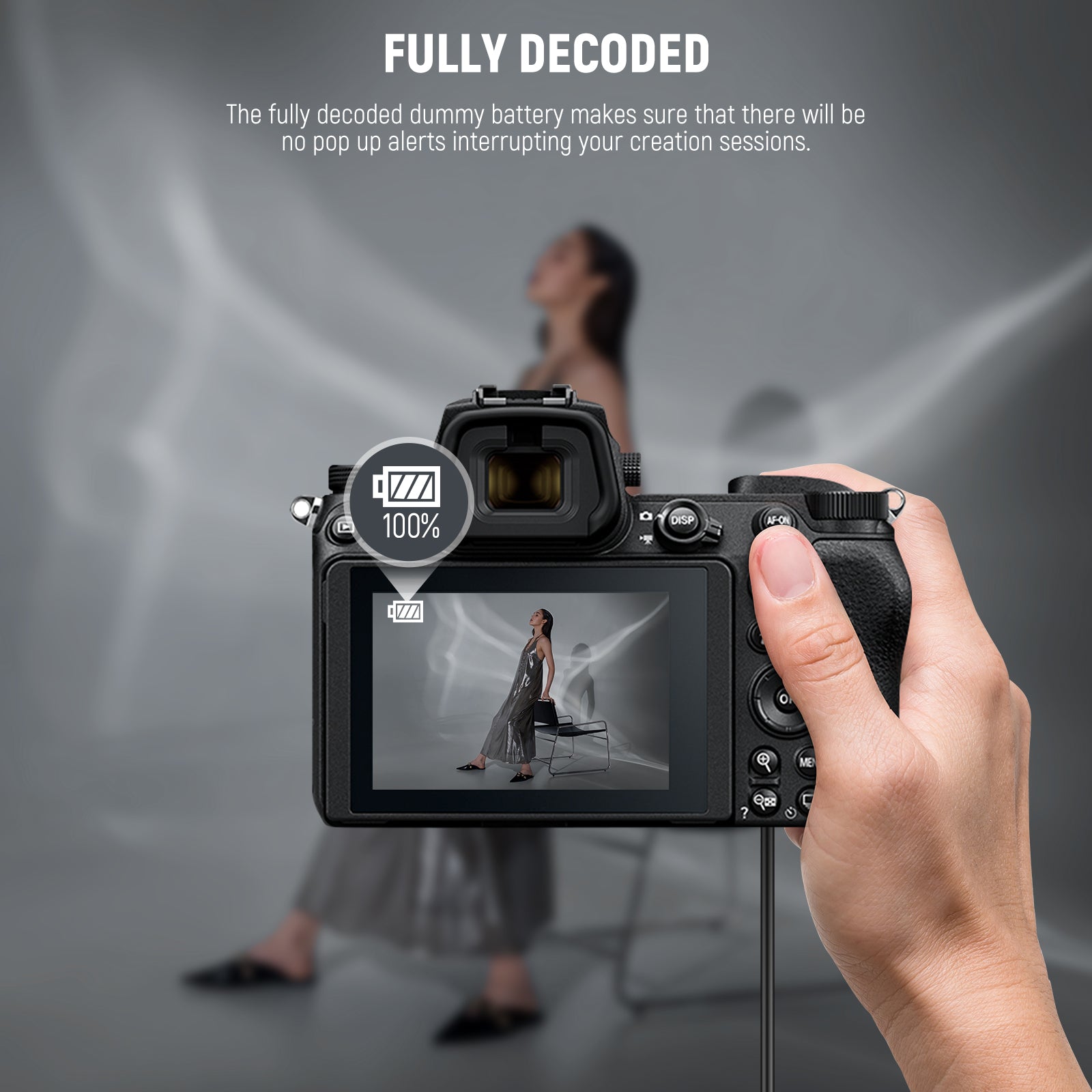 - Compatible Device Models- This dummy battery is a replacement battery for Nikon EN-EL15, and is fully compatible with Nikon Z8 Zf Z6 Z6II Z7 Z7II Z5 D850 D810 D810A D780 D750 D610 D500 D7500 D7200 cameras that accept EN-EL15 EN-EL15a EN-EL15b EN-EL15c batteries